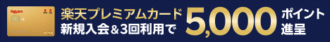 | キャンペーン名称 | 楽天プレミアムカード新規入会&利用で5,000ポイント |