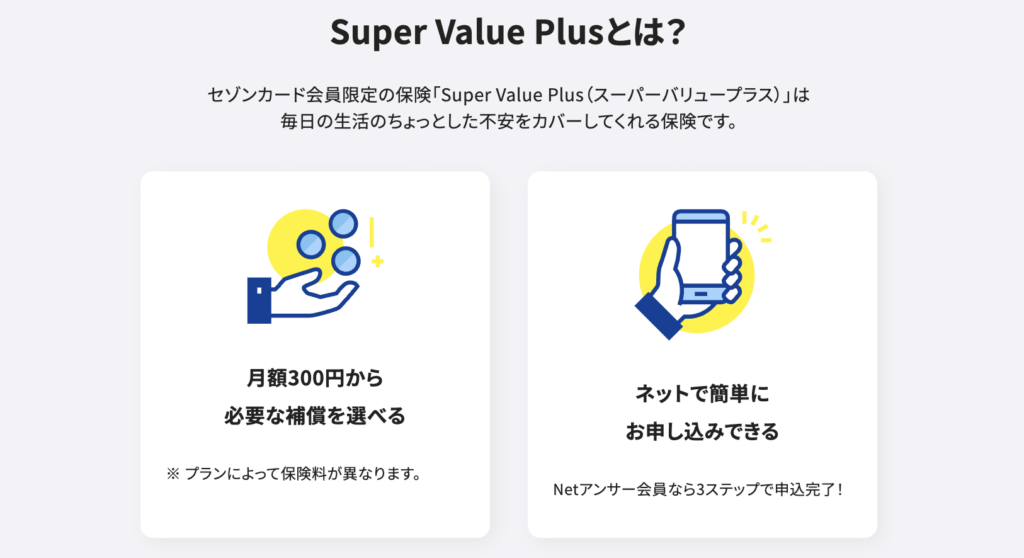 | Super Value Plusで300円から保険加入 | 月額300円〜加入可能な生活サポート型保険プラン |
