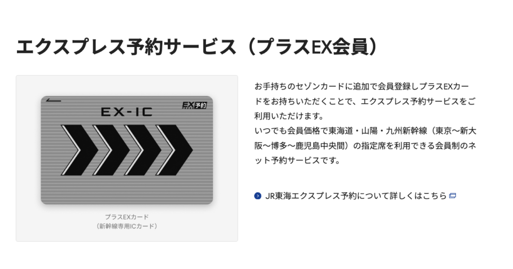 | 新幹線のプラスEX会員登録 | 東海道・山陽新幹線の優待価格での乗車予約が可能 |