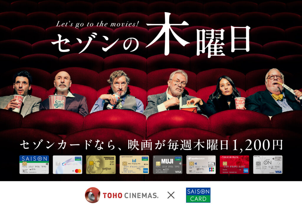 セゾンの木曜日とは、全国のTOHOシネマズで好きな映画を通常大人2,000円(税込)のところ、1,200円(税込)で鑑賞できる特典。映画好きには見逃せません!TOHOシネマズでお得に映画を楽しめます。