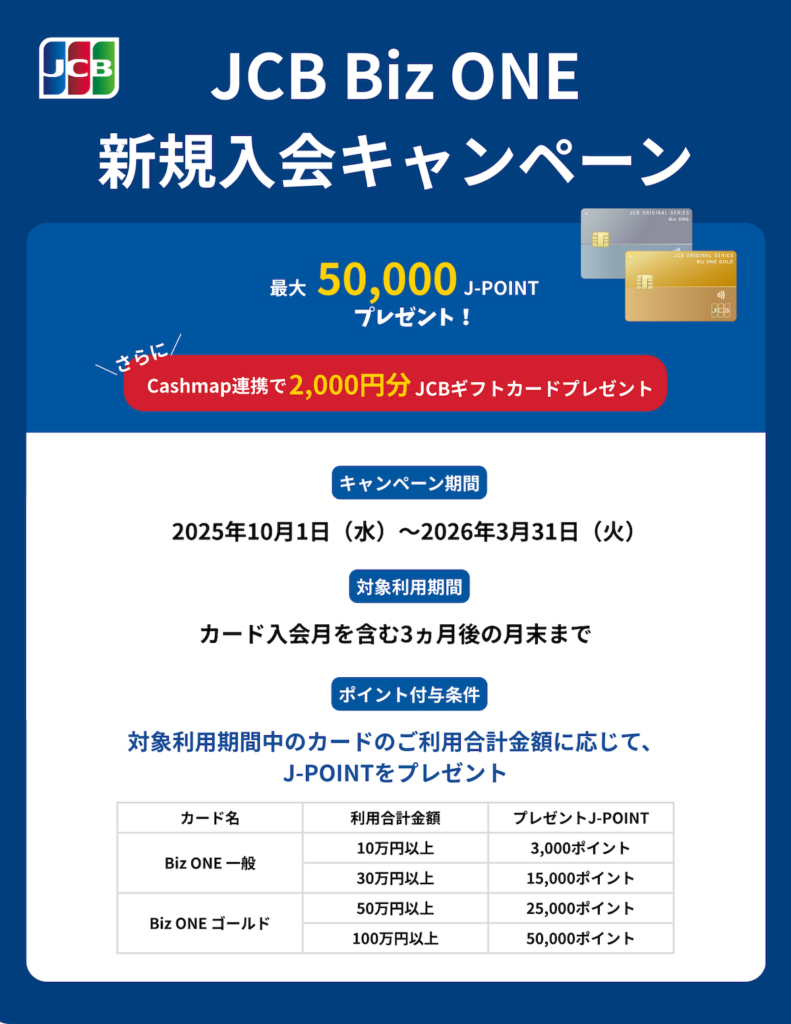 【最大5,000ポイント】JCB Biz ONEの新規入会キャンペーン情報