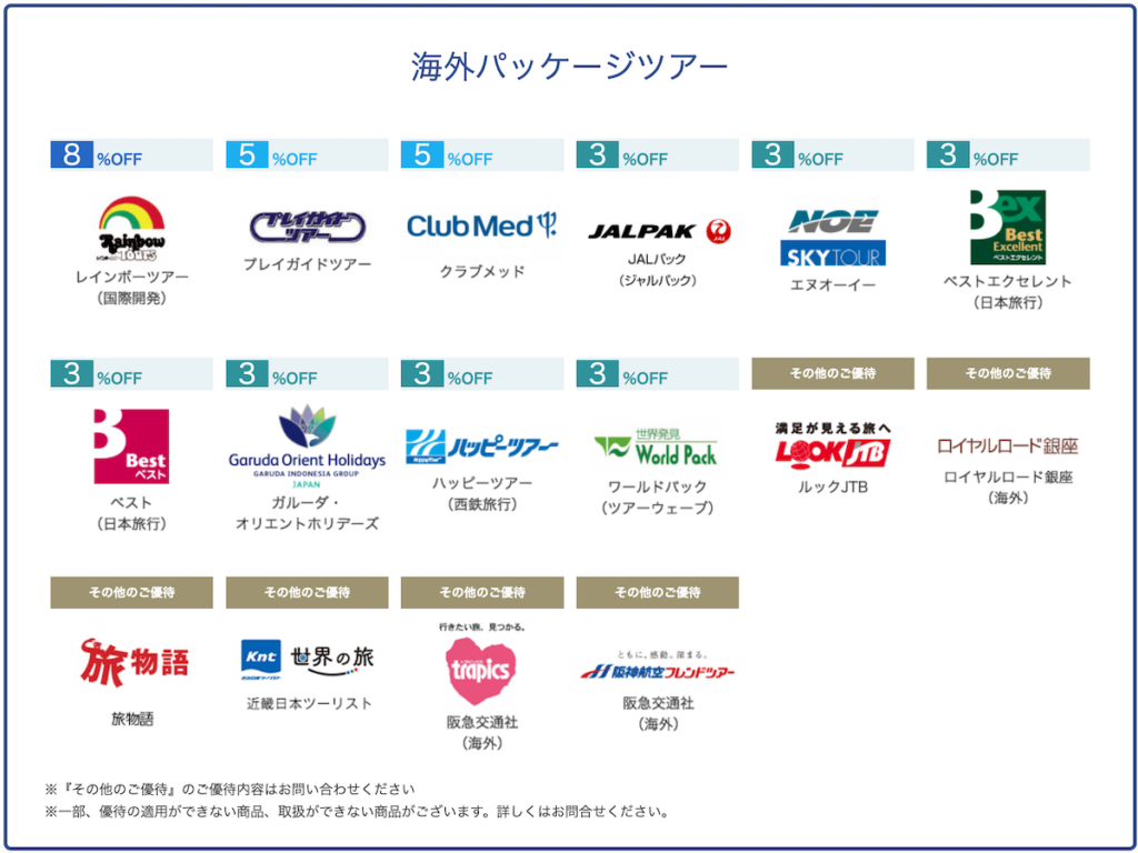 apollostation THE PLATINUMには、旅行費用を抑えながら安心して計画できる「tabiデスク」の優待サービスが付帯しています。大手旅行会社が提供する国内・海外ツアーが最大8%OFFになり、同行者も一緒に割引対象となるのが魅力です。出発から帰着まで、コスト面でもサポートを実感できる特典です。