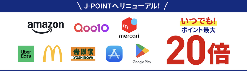 J-POINTパートナーサイトから、日頃利用している店舗を事前登録するだけで、ポイント還元率が最大10.5%にアップするのが魅力です。Amazonやセブンイレブン、Starbucksなども対象で、日常遣いでも十分活躍するでしょう。