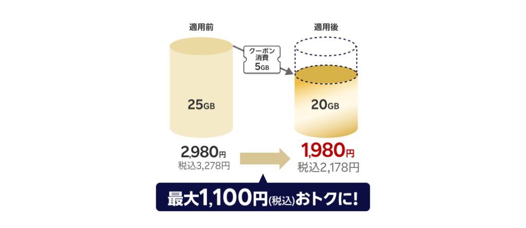 - クーポン分は当月の国内データ利用量から差し引かれる
